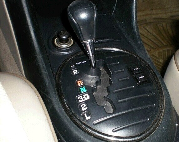 下圖是非常常見(jiàn)的變速箱檔桿,還有一種直上直下的,一不小心就會(huì)掛到3檔上,小心中招。